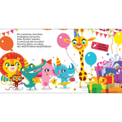 Żyrafka zaprasza na swoje przyjęcie urodzinowe! Zapukaj do drzwi, a zaprosi Cię do domu. Złóż jej życzenia, a zobaczysz co się wydarzy. Uderz w bębenki i zacznijcie wspólne przyjęcie. Na koniec pomóż jej zdmuchnąć świeczki.